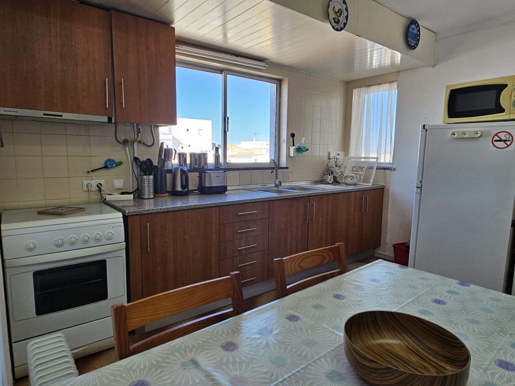 Sala luminosa com uma varanda generosa, com vista sobre as lagunas do parque natural e o atlântico, ideal para refeições ao ar livre ou simplesmente para apreciar o pôr do sol.Cozinha renovada e modernizada pronta para uso.